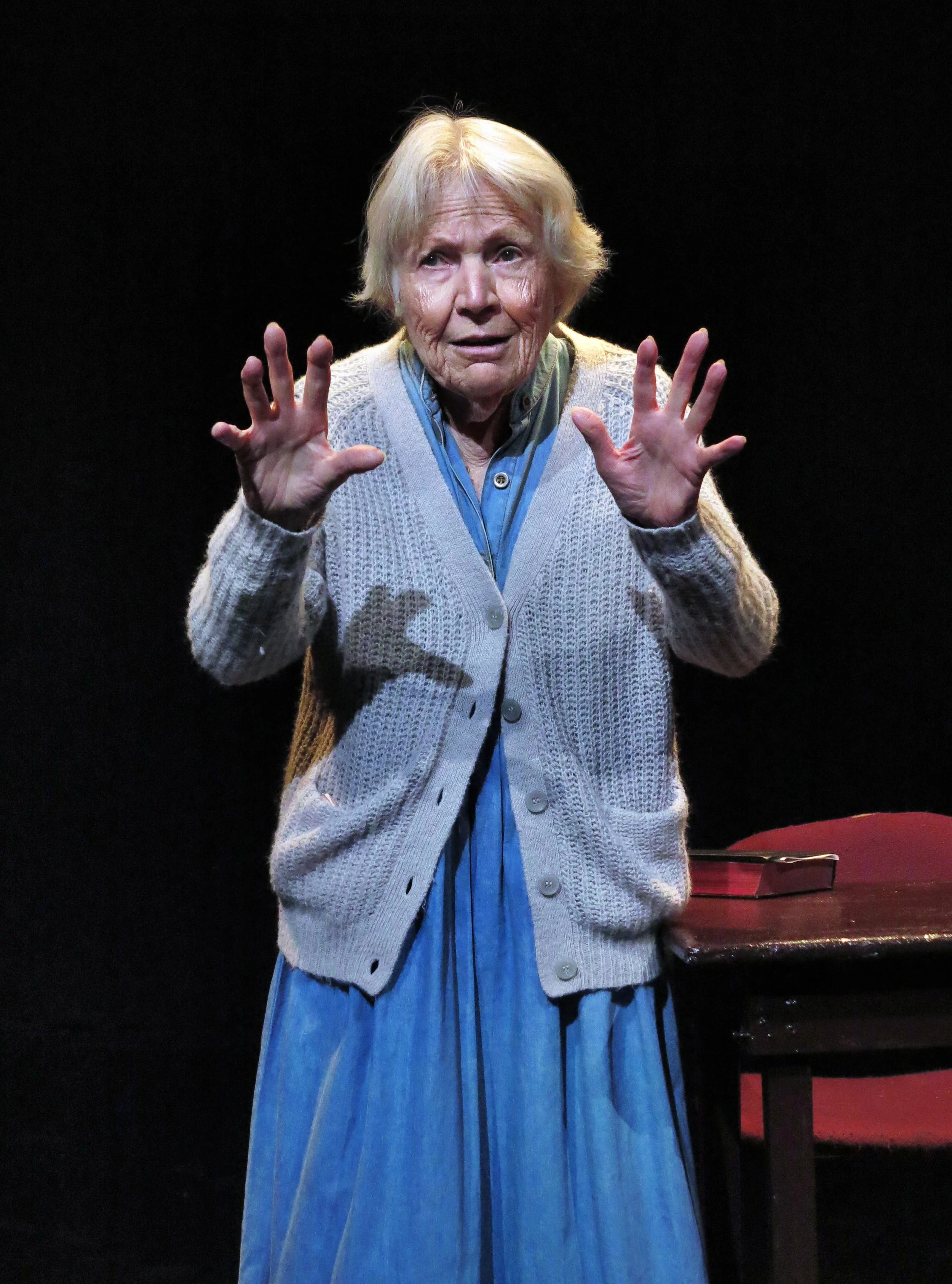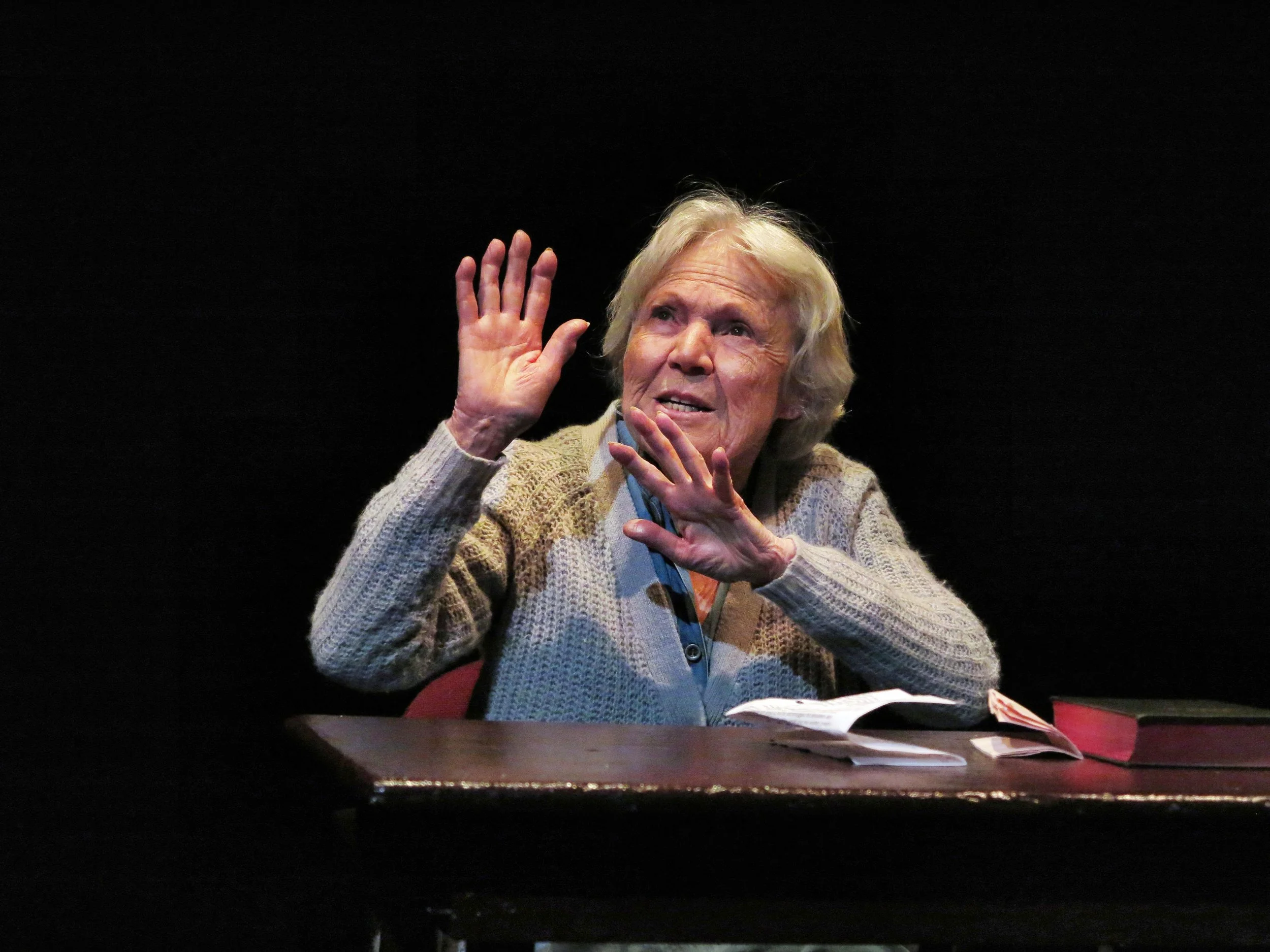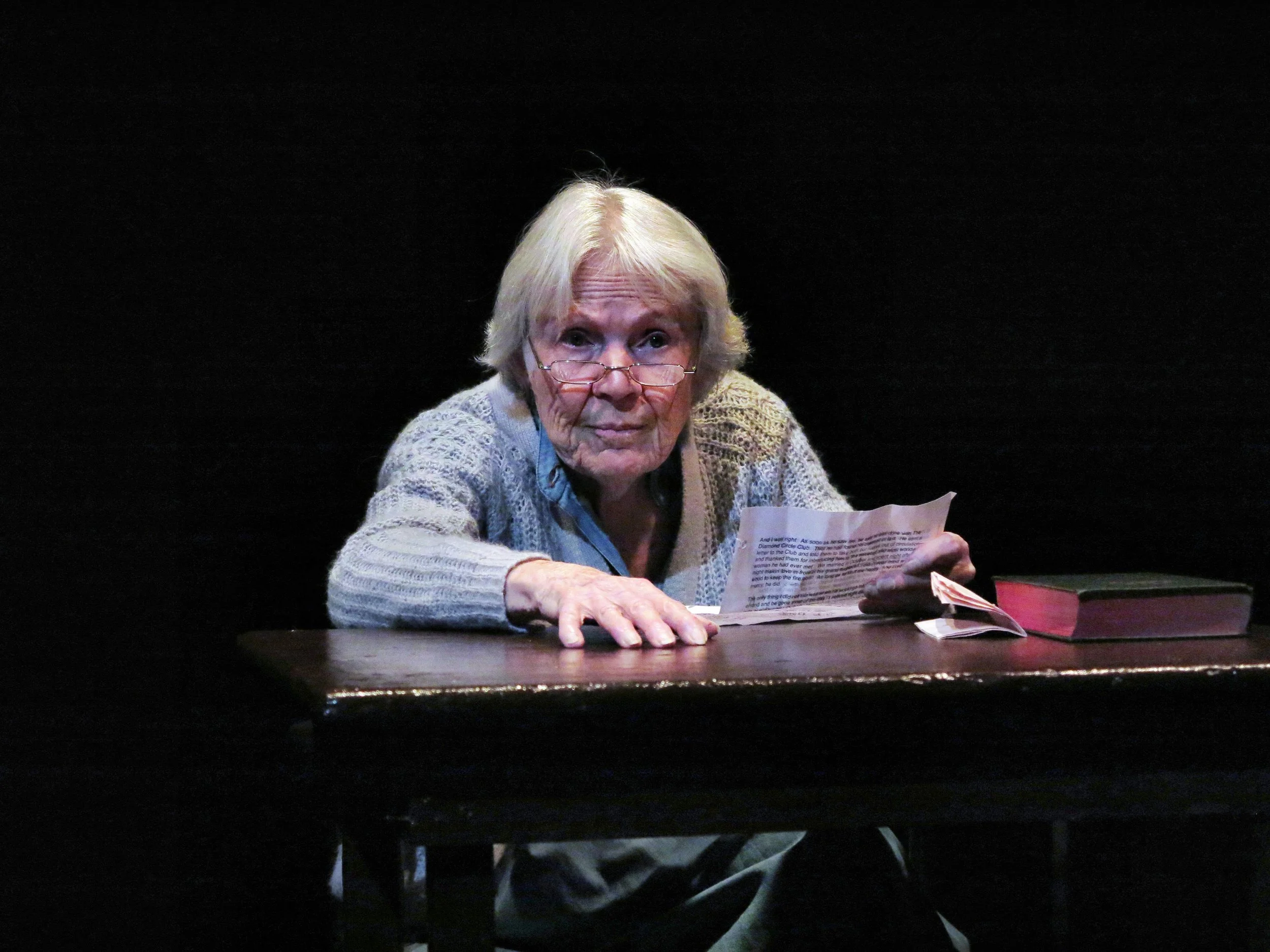 Marilyn Chris as Nanny Doss in the debut production of "The Giggling Granny" by Marsha Lee Sheiness, directed by Jim Semmelman, at Theater for the New City, NYC.